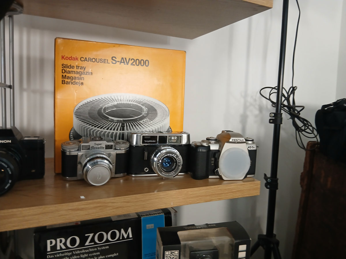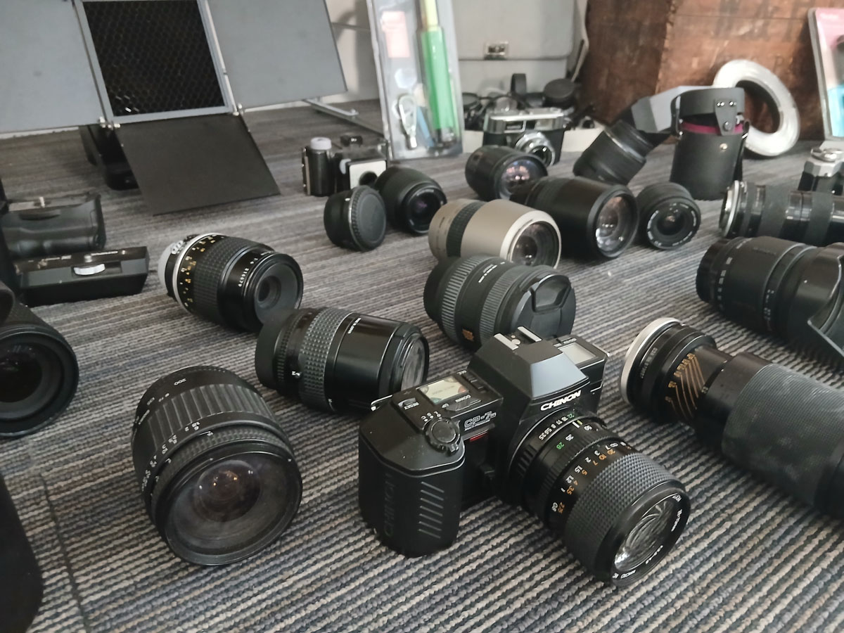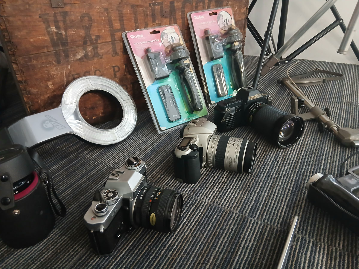 Due to retirement a very large consignment collected from an established local Camera Shop, including vintage and modern cameras, camcorders, lights, lens, stands, bags other camera accessories and stock